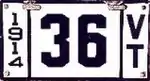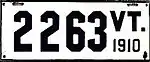 1914 | Black serial on white porcelain plate with border line; vertical "1914" and "VT" at left and right respectively | none | 1234 | 1 to approximately 8300 | |