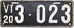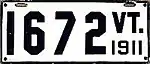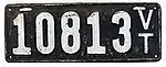 1913 | Black serial on white porcelain plate with border line; vertical "VT" and "1913" at left and right respectively | none | 1234 | 1 to approximately 6000 | |