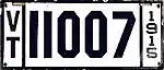 1915 | Black serial on white porcelain plate with border line; vertical "VT" and "1915" at left and right respectively | none | 12345 | 1 to approximately 11500 | |