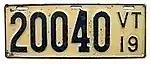 1919 | Embossed blue serial on off-white plate with border line; "VT 19" at right | none | 12345 | 1 to approximately 26700 | |