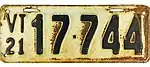 1921 | Embossed black serial on white plate; "VT 21" at left | none | 12-345 | 1 to approximately 37-000 | |