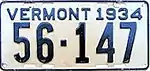 1934 | Embossed dark blue serial on white plate with border line; "VERMONT 1934" at top | none | 12-345 | 101 to approximately 66-000 | |