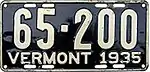 1935–36 | Embossed white serial on dark blue plate with border line; "VERMONT 1935" at bottom | none | 12-345 | 101 to approximately 73-000 | Validated through March 31, 1936. |