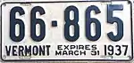 1936–37 | Embossed dark blue serial on white plate with border line; "VERMONT EXPIRES MARCH 31 1937" at bottom | none | 12-345 | 1 to approximately 77-000 | |