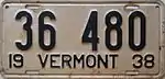 1938 | Embossed dark blue serial on white plate; "19 VERMONT 38" at bottom | none | 12 345 | 1 to approximately 78 000 | |
