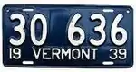 1939 | Embossed white serial on dark blue plate; "19 VERMONT 39" at bottom | none | 12 345 | 1 to approximately 81 000 | |