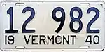 1940 | Embossed dark blue serial on white plate; "19 VERMONT 40" at bottom | none | 12 345 | 1 to approximately 84 000 | |