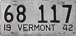 1942–43 | Embossed dark blue serial on white plate; "19 VERMONT 42" at bottom | none | 12 345 | 1 to approximately 88 000 | Revalidated for 1943 with yellow tabs, due to metal conservation for World War II. |
