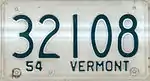 1954 | As 1952 base, but with "54 VERMONT" at bottom | none | 12345 | 1 to 99999 | |