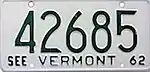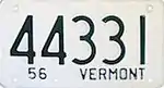 1956 | As 1952 base, but with "56 VERMONT" at bottom | none | 12345 | 1 to 99999 | |