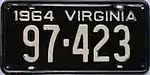 1964 Embossed white serial on black plate; "1964 VIRGINIA" at top 123-456 1 to 999-999