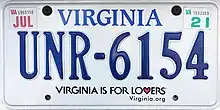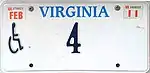 8. 1 2 3 Tanner, Eric N. "Virginia Passenger License Plates". allaboutlicenseplates.com. Retrieved November 10, 2020.