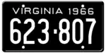 1966 Embossed white serial on black plate; "VIRGINIA 1966" at top 123-456 1 to 999-999
