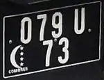 The Comoros requires its residents to register their motor vehicles and display vehicle registration plates.[1] The current plates are European standard 520 mm × 110 mm, and use French stamping dies.[2][3]
