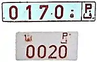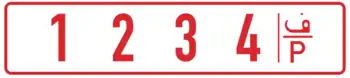 Vehicles belonging to the Palestinian Authority such as officials' cars, ambulances, fire brigade police and special military police use white number plates with red numbers in the XXXX format with leading zeros.