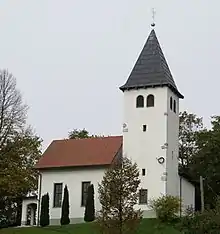 The local church is dedicated to Anthony of Padua and belongs to the Parish of Žalna. It was built between 1938 and 1940.[4]