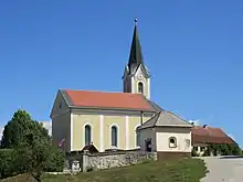 The local parish church is dedicated to Saint Ulrich (Slovene: sveti Urh) and belongs to the Roman Catholic Diocese of Novo Mesto. It was built in 1910 on the site of a 17th-century predecessor.[4]