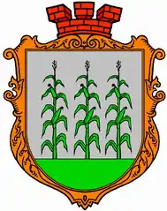 Velyki Luchky has its own coat of arms with three stalks of corn on a silver background.