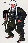 In 1922, the newspaper's employees came up with the idea of creating a satirical magazine Skorpion, which would criticize such phenomena as petty bourgeoisie, philistinism, formalism, and bureaucracy. The artists of Skorpion were A. Ivanov and V. Romov. Romov's cartoons, published in the headings "Nep Grimaces" and "Grimaces of life", reflected the characteristic types of that era: a smug Nepman and combine dealers who used "air" and "smoke" as profit.[1]