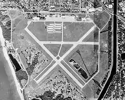 The airport was built during the 1940s by the United States Army Air Forces and served as a military flight training facility.[3] It also was used by Air Transport Command to deliver US-built aircraft destined for Britain under Lend-lease from the factories on the West Coast or for assignment to selected British pilots. Some of the aircraft were partially disassembled and prepared for being loaded on board ships for the trip across the Atlantic Ocean.