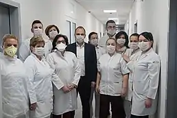 Filipče visiting the National Institute of Public Health in Skopje during the COVID-19 pandemic.