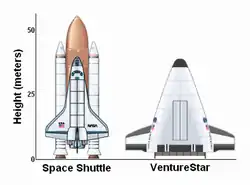 VentureStar was a single-stage-to-orbit reusable launch system proposed by Lockheed Martin and funded by the U.S. government. The goal was to replace the Space Shuttle by developing a re-usable spaceplane that could launch satellites into orbit at a fraction of the cost. While the requirement was for an uncrewed launcher, it was expected to carry passengers as cargo. The VentureStar would have had a wingspan of 68 feet (20.7 m), a length of 127 feet (38.7 m), and would have weighed roughly 1000 t (2.2 million lb).