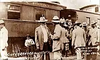 Outside his home bailiwick of Coahuila in exile in Sonora, Carranza had to broaden his movement, which in Coahuila had drawn on state elites. In Sonora, which was more isolated geographically from Mexico City since there was no direct railway line, the revolution had gone at a faster pace than in Coahuila. The region was in many ways autonomous because federal troops could not be quickly dispatched and there were natural resources to draw on for the armed struggle.[28] Carranza met Sonoran revolutionaries who came from middle and working-class backgrounds. He was able to attract to his movement able men not trained as soldiers. These included Álvaro Obregón, who as a widower with small children at the time did not join in Madero's earlier movement; and Obregón's cousin Benjamin G. Hill, and Plutarco Elías Callesí. Others included Pablo González; Manuel Diéguez, who had participated in the Cananea strike; Heriberto Jara, who was a former textile worker who participated in the great Río Blanco strike. Carranza also attracted intellectuals to his movement, especially Luis Cabrera and Pastor Rouaix.[29] Carranza also gained the support of Francisco Villa of Chihuahua, who had played an important role in toppling the Díaz regime.