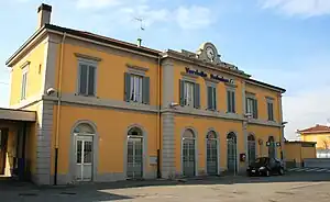 Verdello-Dalmine (Italian: Stazione di Verdello-Dalmine) is a railway station serving the towns of Verdello and Dalmine, in the region of Lombardy, northern Italy. The station opened in 1857 and is located on the Treviglio–Bergamo railway. The train services are operated by Trenord.
