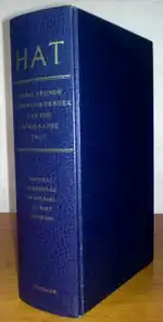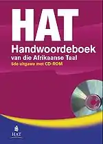 The Handwoordeboek van die Afrikaanse Taal (HAT), is the best known explanatory dictionary for the Afrikaans language and is generally regarded as authoritative. Compared to the Woordeboek van die Afrikaanse Taal (WAT) it is a shorter Afrikaans explanatory dictionary in a single volume. The latest edition of the HAT, the sixth, was published in 2015, 50 years after the first edition of 1965. HAT6 comprises 1,636 pages.