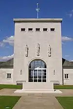 Among Hill's works are the architectural sculptures of Courage, Victory and Justice, which adorn the entry to the shrine on the north side of the triple arched portico by the cloisters.[11]