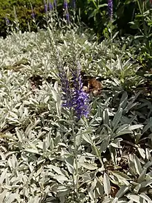 Veronica incana, the silver speedwell, is a species of flowering plant in the family Plantaginaceae.[2] It is native to parts of Eastern Europe and Russia, all of Siberia, Mongolia, and northern China, and has been introduced to Czechoslovakia.[1] A number of authorities consider it to be a subspecies of the spiked speedwell Veronica spicata; Veronica spicata subsp. incana.[3] It is a parent of the hybrids Veronica × czemalensis (with V. porphyriana) and Veronica × grisea (with V. longifolia).[4]