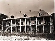 The La Ronde mansion was looted and heavily damaged by the British during the fateful Night Attack of December 23, 1814, which effectively launched the Battle of New Orleans, then further ruined when commandeered by the British as a field hospital. The house then burned about 70 years later, though most of the walls remained standing until the hurricane of 1915.[12] A few ruins remain visible along Highway 46 in St. Bernard Parish, as does the Southern live oak allée that once graced the path from the Mississippi River landing to the manor house.