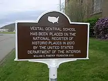 2. Kathleen LaFrank (October 2009). "National Register of Historic Places Registration: Vestal Central School". New York State Office of Parks, Recreation and Historic Preservation. Retrieved 2010-06-15. See also: "Accompanying 11 photos".