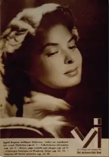 Known for its photojournalism, Vi published many Swedish photographers, such as Hans Malmberg, Georg Oddner[9] and Tore Johnson[4][10] (members of the agency Tio fotografer) early in their careers. Photographer Anna Riwkin in 1942, and working for Vi, traveled to Lapland for a report on a Sami village.[11] She and the journalist Elly Jannes returned several times, resulting in books about Sami life and the very popular children's book Elle Kari.[12] Having established himself in 1938, until 1946, Karl W. Gullers contributed pictures to Vi, with a cover story 'The Black Metropolis,'[13][4] and also wrote articles himself. In the spring of 1945 he made around 30 photographs in Malmö of the arrival on white buses of former Nazi concentration camp survivors for the magazine. The impact of his photographs influenced the Swedish aid effort.[14]