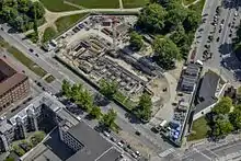 Preparations such as wire work and archeological excavations began ultimo 2010 and construction work began ultimo 2012. The station was opened on 29 September 2019 together with 16 other stations of the line.[3]