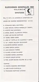 UCD's list for Valencia Province (1982 General Election). Mr. Ruiz Monrabal has the third place.