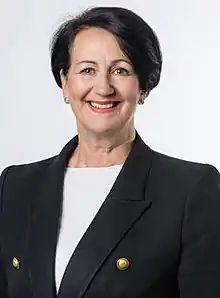 Vickie Ann Chapman is a former Australian politician, representing the South Australian House of Assembly seat of Bragg for the South Australian Division of the Liberal Party of Australia between the 2002 election and May 2022. Chapman served as the Deputy Premier of South Australia and Attorney-General between 19 March 2018 and 22 November 2021 in the Marshall government.[1] She was the first woman to hold either post.