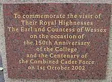 A memorial service was held on 2 June 1946 in the main hall to remember Old Victorians who died in the war. The school quickly returned to its normal functioning, and the next few years saw a range of developments including a wider range of subjects and the building of a new sports pavilion and art building. By 1952, the school was in a state fit to celebrate its centenary, which was marked by a visit from the Duke and Duchess of Gloucester.[17] This development continued into the next decade as an associated preparatory school was opened in 1966.[5] The school's 125 year anniversary was commemorated by Jersey Post with an issue of special stamps on 29 September 1977.[22]