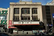 The façade of the Victoria Theater, showing its most recent name of "Moviecenter 5"