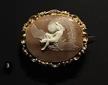 The first period in Victorian jewellery is known as the Romantic period or early Victorian period.[4] During this period, inspiration derived from the Renaissance, Middle Ages and the natural world.[4] This period saw a rise in the use of gold material,[4] which contributed to the construction of jewellery.