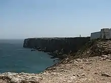 Due to its geographical location, it is the only municipality in the country with a western and southern coastline.[12] The southern coast, which extends until Cape St. Vincent, includes several bays and sheltered coves, including: the beaches of Praia do Burgau, Cabanas Velhas, Boca do Rio, Praia da Salema, Figueira, Furnas, Zavial, Ingrina, Barranco, Martinhal, Mareta, Tonel and Beliche.[12] Meanwhile, to the west of the St. Vincent coast are the beaches of Telheiro, Ponta Ruiva, Castelejo, Cordoama, Barriga and Murração, that include many carved cliffs and rocky promontories.[12]