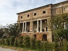 Villa La Favorita was constructed between 1615 (or 1613) and 1624 by Duke Ferdinand Gonzaga, who intended to move his court from the ducal palace to here.[1][2] It was built on the outskirts of Mantua, but not too far, just on the other side of the lakes that surround the city. The ducal architect, Nicolò Sebregondi, provided the design and was responsible for the overseeing the building.[1][2] The palace was the last great Gonzaga residence, and was a grand baroque structure.[1]