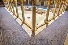 The mosaic and opus sectile floors cover some 3,500 m2 and are almost unique in their excellent state of preservation due to the landslide and floods that covered the remains.[3]