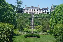 The surrounding bluff is landscaped with terraces and formal gardens, a "water stairway," fishponds, and two secret gardens.[6] Rose Standish Nichols is credited with the original landscape design.[4] No record of her plan for the Smith residence has been found.