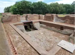 Aerial photographs show that the area was densely built-up. Today, due to dumps of earth from early excavations and the extensive planting of pine trees in the 1940s which are endangering the surviving ruins of the villa underground with their roots and on the surface, only three parts of the villa are visible:[8]