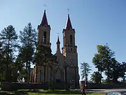 Neogothic Catholic church in Lavoriškės, Vilnius district municipality.