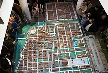 • Principium of the Roman castrum (at least 50 by 70 m (160 by 230 ft) in total) along with a number of Roman coins and other artifacts was found in November 2020.[27] The Principium was the main headquarters of the Legio VII Claudia. The massive object, which covers 3,500 m2 (38,000 sq ft) and has 40 rooms, hosted offices, armories, shrine, vault, basilica, and room for keeping military flags and insignia. Central section is an inner yard with peristyle. Water storage and fountain are also within the complex, which is from all sides surrounded by the colonnades. Strong walls point to the existence of upper floors. Interior remains show paving of the floor with decorative tiles (glass hour or butterfly ornaments), while the walls were decorated with red and white patterns, floral motifs, inscriptions and bordures. In the vault the denarius and antoninianus coins were found, mostly depicting the 3rd century emperors Gallienus, Claudius Gothicus and Aurelian.[26]