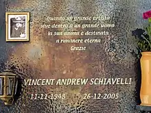 Schiavelli died of lung cancer on December 26, 2005, at the age of 57 at his home in Polizzi Generosa, the Sicilian town where his grandfather Andrea Coco was born, and about which he wrote in his 2002 book Many Beautiful Things: Stories and Recipes from Polizzi Generosa (ISBN 0-7432-1528-1).[6] He was buried at Polizzi Generosa Cemetery near Palermo, Sicily.