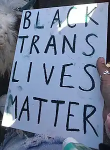 Young transgender women of color experience violence and murder at a rate much higher than that of their white transgender counterparts.[7] A study conducted by the Gender Public Advocacy Coalition sought to examine the transgender murder rate from 1995 to 2005. The study focused on victims that were under the age of 30. Of the 51 victims that they analyzed, 91% of them were people of color. In a separate study conducted by Garofalo et al. (2006), the self-report survey revealed that 52% of the 51 transgender women of color had been raped. This study also found that MTF transgender youth of color are at risk of homelessness, substance abuse, and contracting HIV.[13]