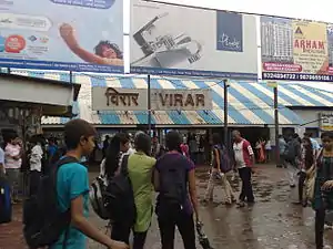 Virar (Marathi pronunciation: [ʋiɾaːɾ]; station code: VR) is a railway station on the Western line of the Mumbai Suburban Railway network. Virar is a terminus station. It is around one and a half hours away by train from Churchgate. Virar is a very crowded area, among other adjacent stations like Vasai Road because it is a major tourist spot. It used to be the only railway station to have services to other stations in Palghar District(in which the city of Virar itself is located), Saphale, Palghar, Dahanu and distant southern cities of Gujarat like Vapi, Surat etc. Since 2013 however, the Western Railway zone Suburban network has been extended up to Dahanu.